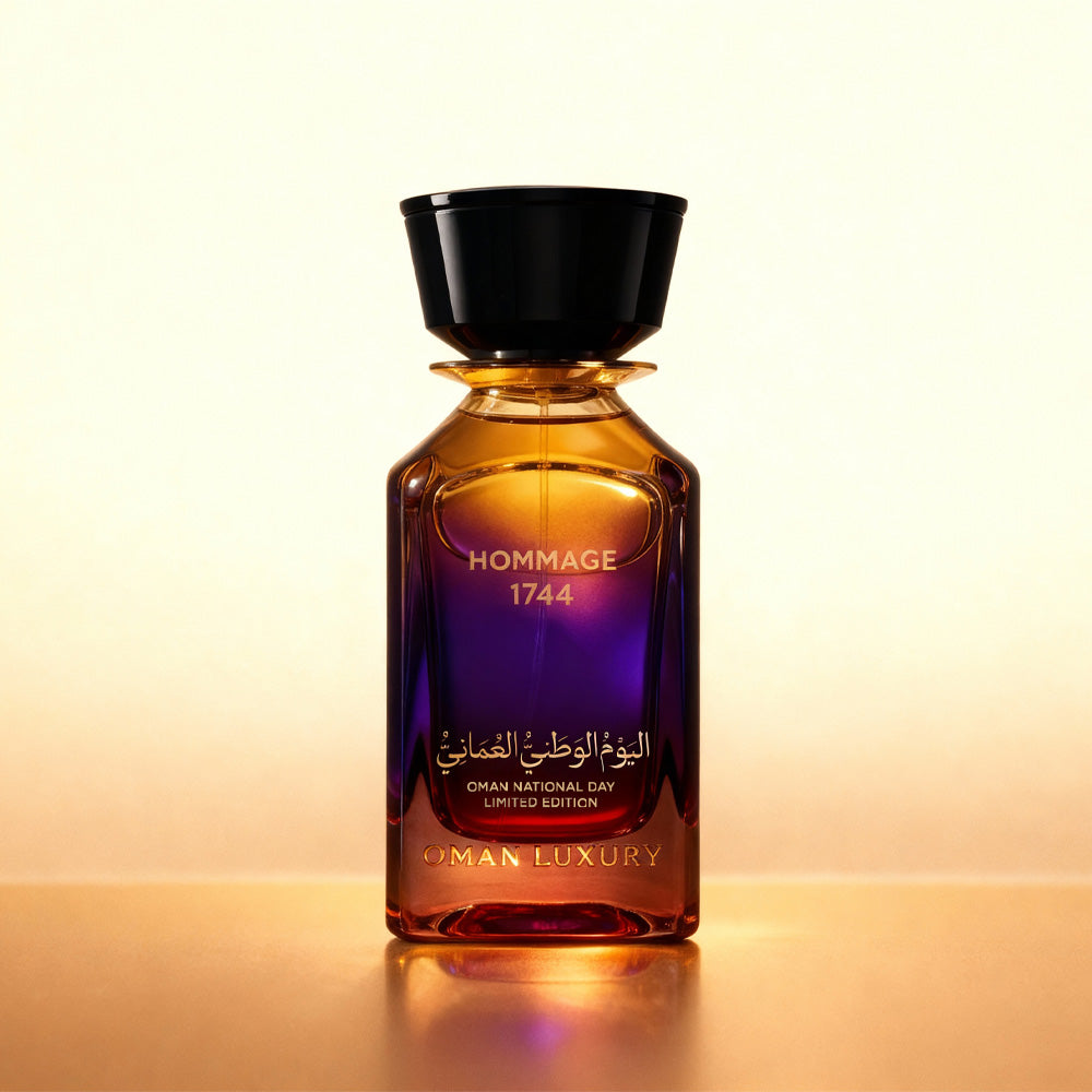 استلهمنا لون الزجاجة من الدرجات الغنيّة والمهيبة للعمامة السعيدية التقليدية، في انعكاسٍ يرمز لجوهر التراث العُماني بتعبيرٍ معاصرٍ راقٍ ومتقن.