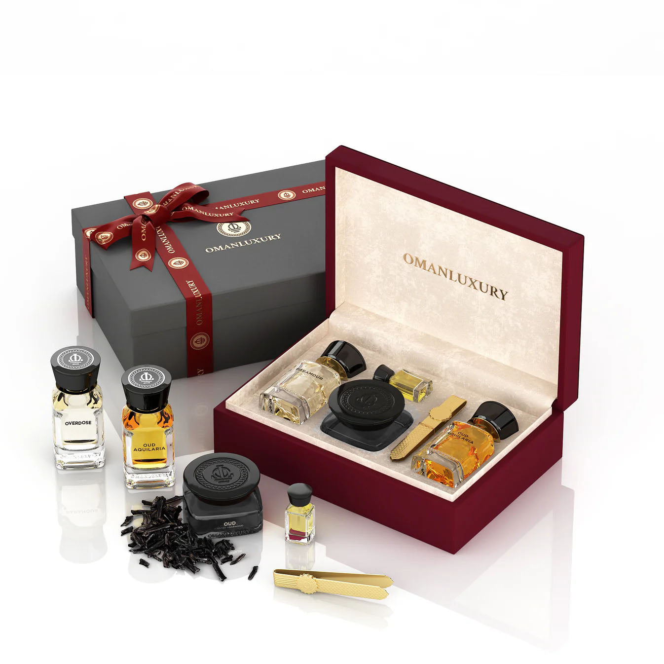 اجعل لحظاتك المميزة لا تُنسى مع صندوق هدايا فاخر من عُمان للفخامة. مجموعة هدايا العطور لدينا هي الطريقة الأمثل للتعبير عن مدى تقديرك لأحبائك. من عطور تُثير الدفء والبهجة، فاجئ أحبائك بهدية من عُمان للفخامة .